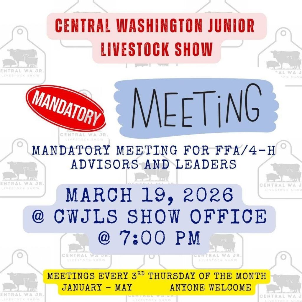 The Aims and Purposes of the Central Washington Junior Livestock Show are to encourage modern selection, raising, and showing techniques of beef, sheep, and hogs. To promote an understanding of the beef, sheep, and hog industry in youth, and provide healthy competition that promotes life skills, such as sportsmanship, proper decision-making, and responsibility with the "hands-on" approach of learning by doing. Implementing food safety and quality assurance are promoted by requiring good record keeping proper handling of livestock feeds and additives, and the proper use of animal health products. The moral responsibility of each livestock exhibitor cannot be stressed enough.